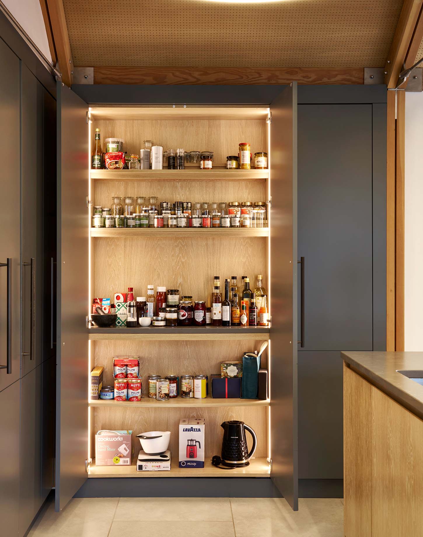Experience the modern allure of the Rio-Valencia range, where hidden handle rail details seamlessly blend with push-to-open doors to achieve a sleek and linear aesthetic. By skillfully contrasting textures and door styles, the design transcends into a captivating and visually stunning composition.