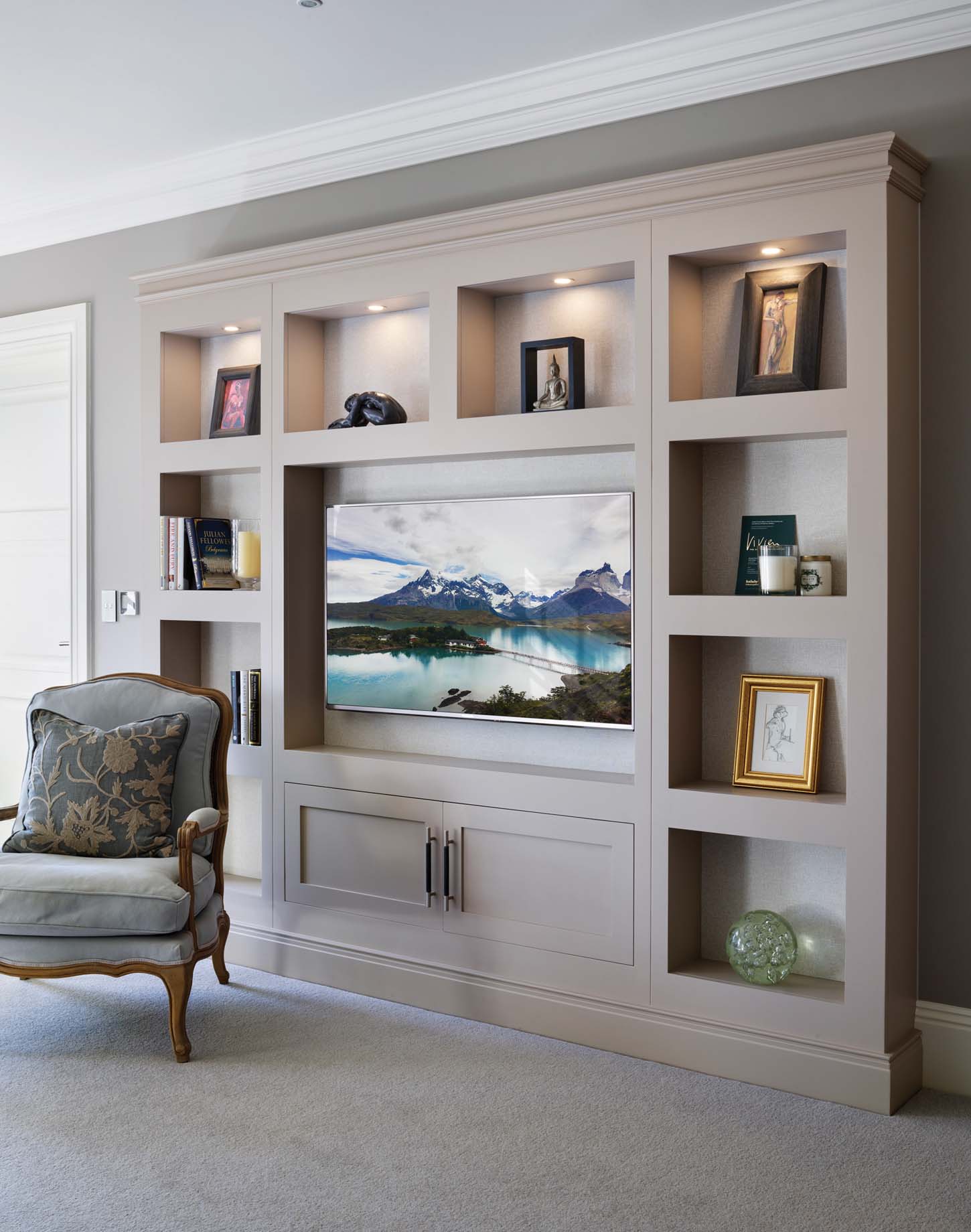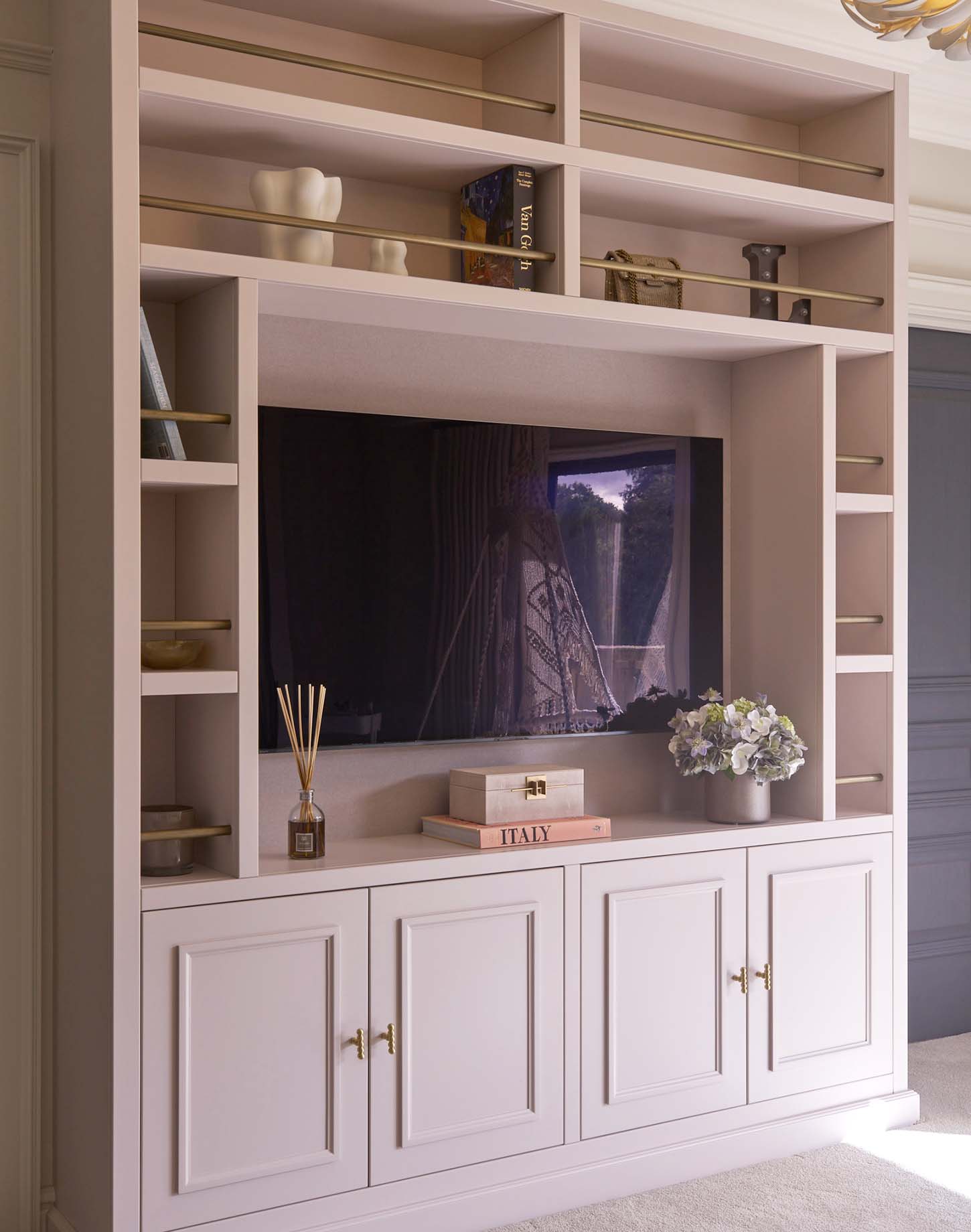 TV Walls and media cabinets can be designed to create impact or to become part of the room architecture and blend into their environment. We design our furniture perfectly to suit your own specific technology, including speaker sets, sound bars and many more home entertainment systems.