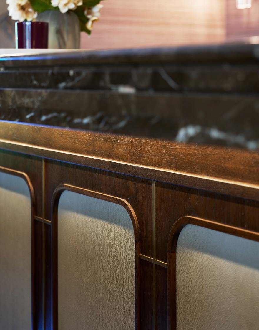 Together, these elements create a cohesive and considered setting—where craftsmanship, proportion and materiality combine to deliver a quietly luxurious dining experience.